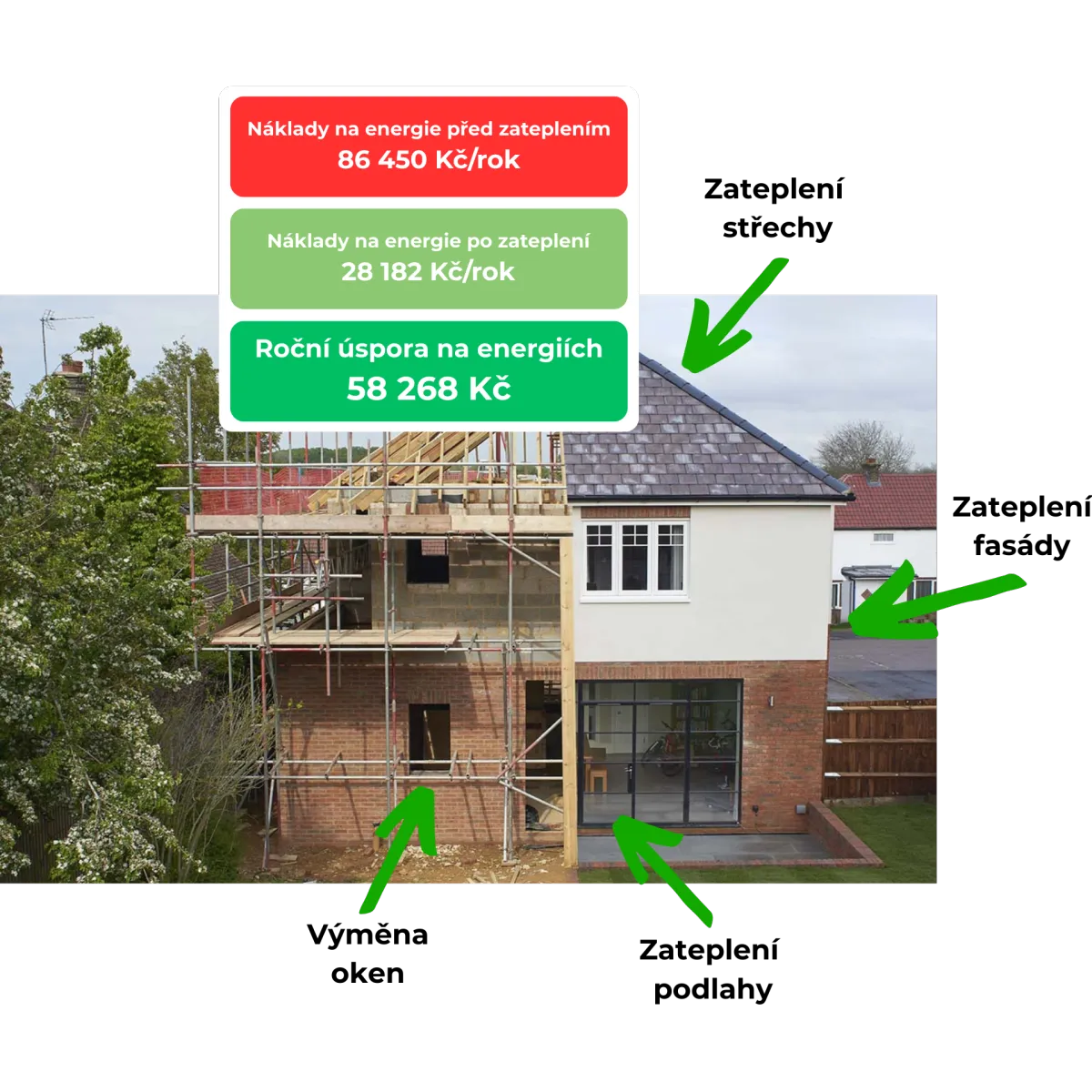 Lze ušetřit více než 50% na vytápění. Moderní vzhled, prodloužení životnosti domu.